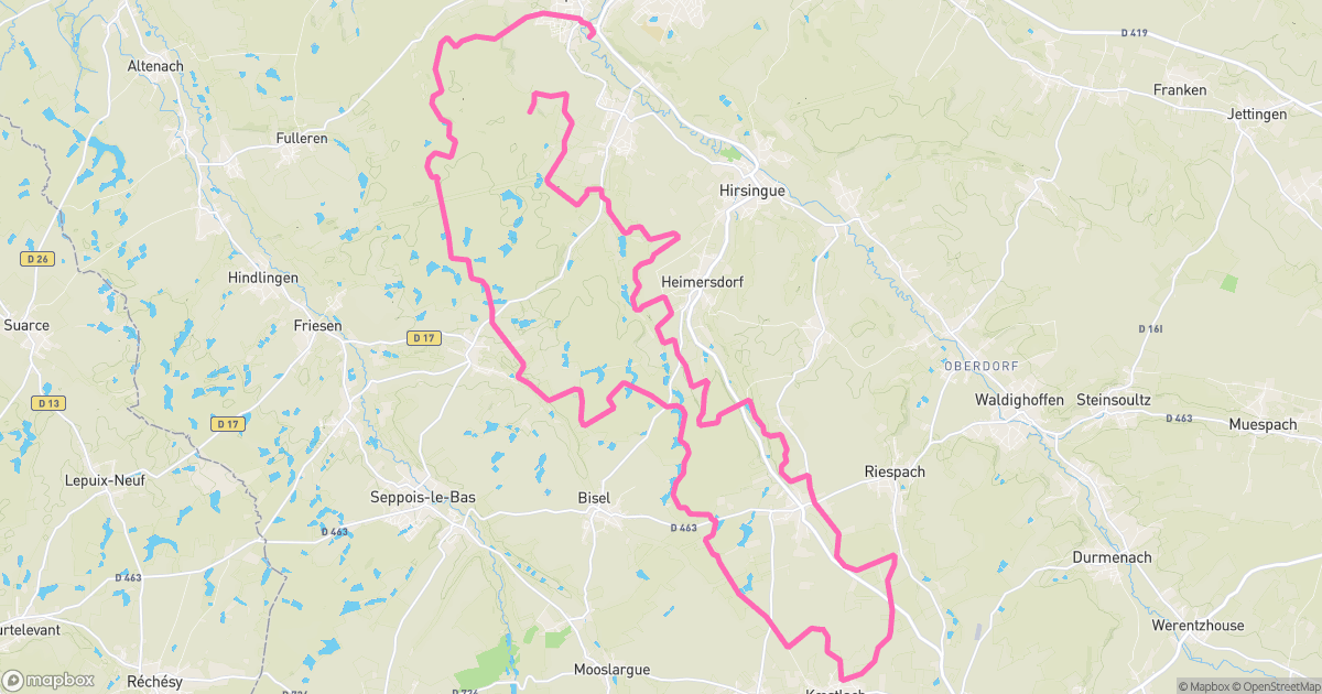 A good day out in Hirtzbach: 45.66 km and 606 m up. Enough punchy climbs to warm the legs, with plenty of fun on the way down.
